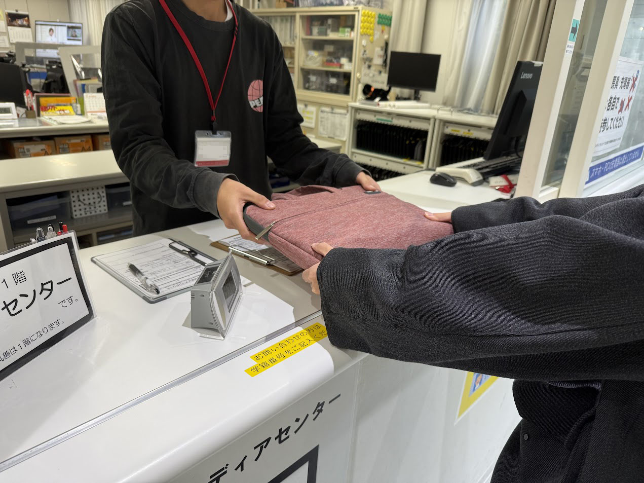 PCやプロジェクターなどの情報機器の貸出や返却受付を行います。