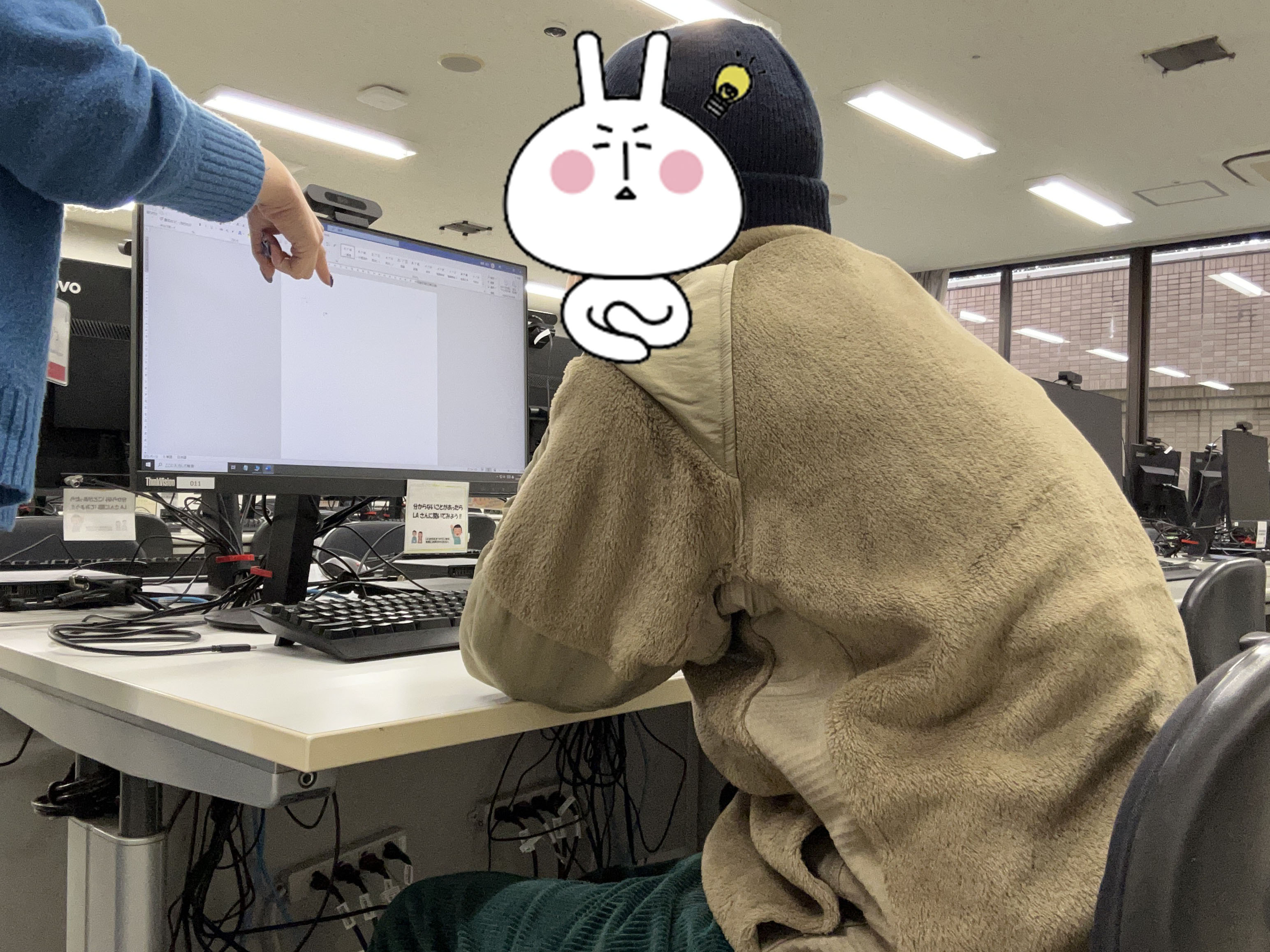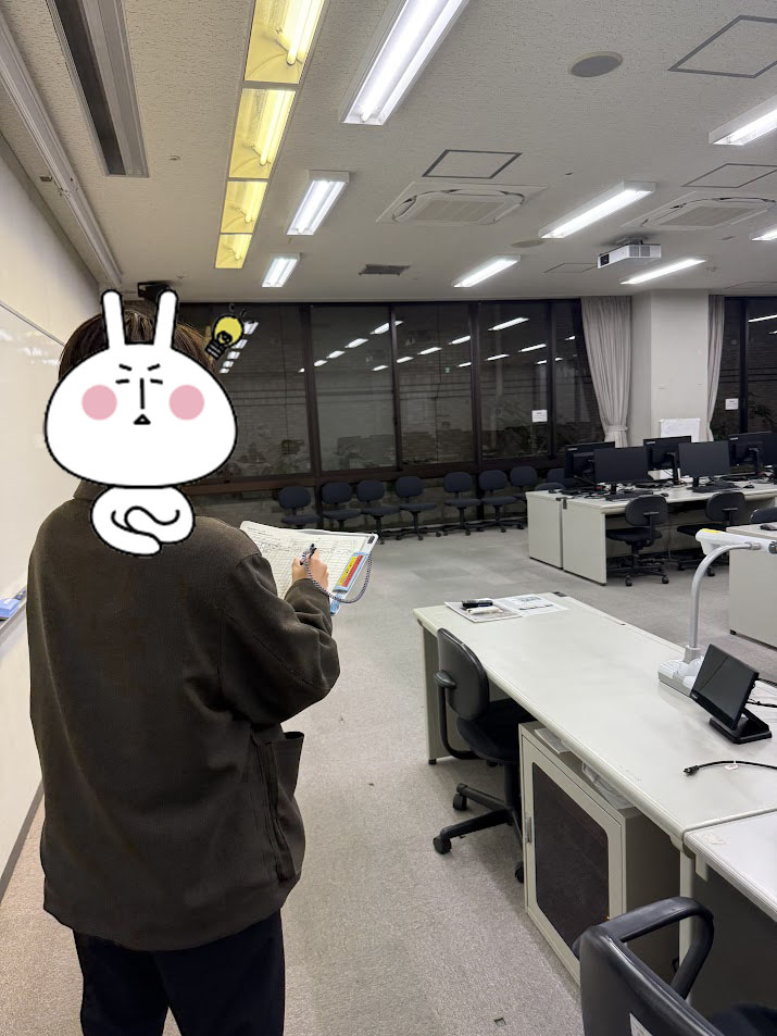 勤務開始10分前に情報メディアセンターへ出勤します。その後セルフラーニング室に移動し、前の勤務者から引き継ぎを受けます。
